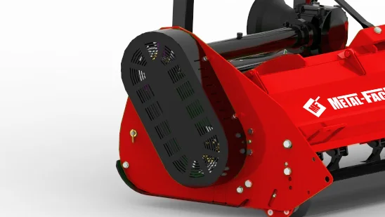 Diese Maschine ist in den vier Arbeitsbreiten 2,0 m; 2,5 m und 2,8 m erhältlich. Die massive und gut durchdachte Konstruktion garantiert einen störungsfreien Betrieb über die gesamte Lebensdauer der Maschine. Die Schnitthöhe kann durch eine verstellbare Radauf¬hängung eingestellt werden. Die Maschinen sind standardmäßig mit einem hydraulischen Verschiebemechanismus ausgestattet und bieten die Möglichkeit auch andere Arten von Messern oder Dreschflegel zu verwenden. Das Gerät wird mittels einer Gelenkwelle (620 Nm, Kupplung: Scherbolzen) durch Ihren Traktor mit 540 Umdrehungen / Min angetrieben. Durch die Verarbeitung von speziellen Verbindungen der Riemenscheiben können Beschä¬digungen der Maschine auch bei einer vollständigen Blockade der Welle ausgeschlossen werden. Weiterer Schutz wird durch das Getriebe mit der sogenannten Freilauffunktion gewährleistet.