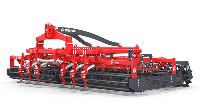 Der Grubber U457 besitzt 36 in 3 Reihen angeordnete Zinken. Eine solche Lösung sollte den Erwartungen der anspruchsvollsten Benutzer in Bezug auf Bodenlockerung entgegenkommen. Die Arbeitsbreite der Maschine beträgt max. 13 cm, die Maschine erreicht eine Arbeitsgeschwindigkeit von max. 15 km/h. Die Maschine muss an einen Schlepper mit einer Leistung von mind. 130 PS angekoppelt werden. In einer Ausführung mit einem Haken mit Ø 36 mm erhältlich.