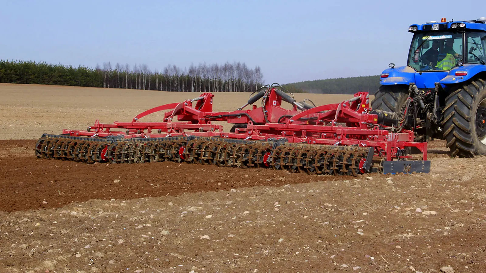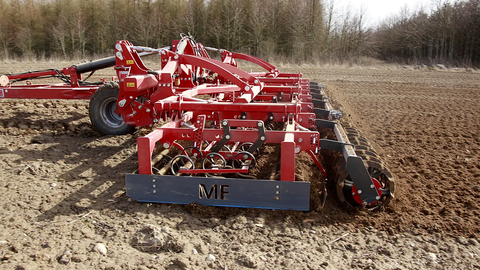 U457 kann mit Radspurlockerern mit Federsicherung nachgerüstet werden. Hinter den Hohlwellen des Grubbers ist eine Schleppe vorhanden, die das Feld ausgleicht.