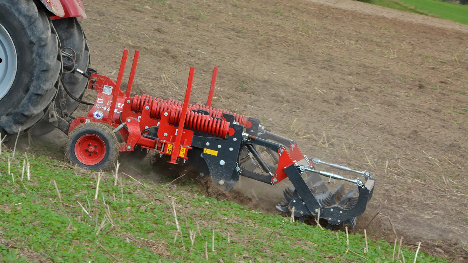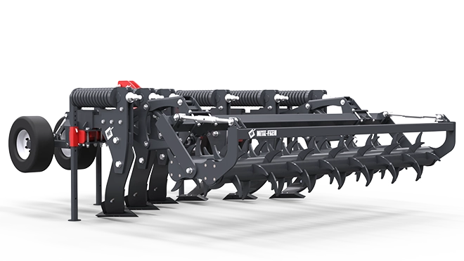 Das Zahnrad der Maschine mit einem Durchmesser von 50 cm dient zum Ausgleichen des aufgelockerten Bodens. Die Zinken hinterlassen Kanäle im Untergrund. Dadurch kann auch Luft und Wasser in den Boden gelangen. Durch die Federabsicherung von Arbeitselementen kann der Tiefenlockerer auf allen Böden eingesetzt werden.